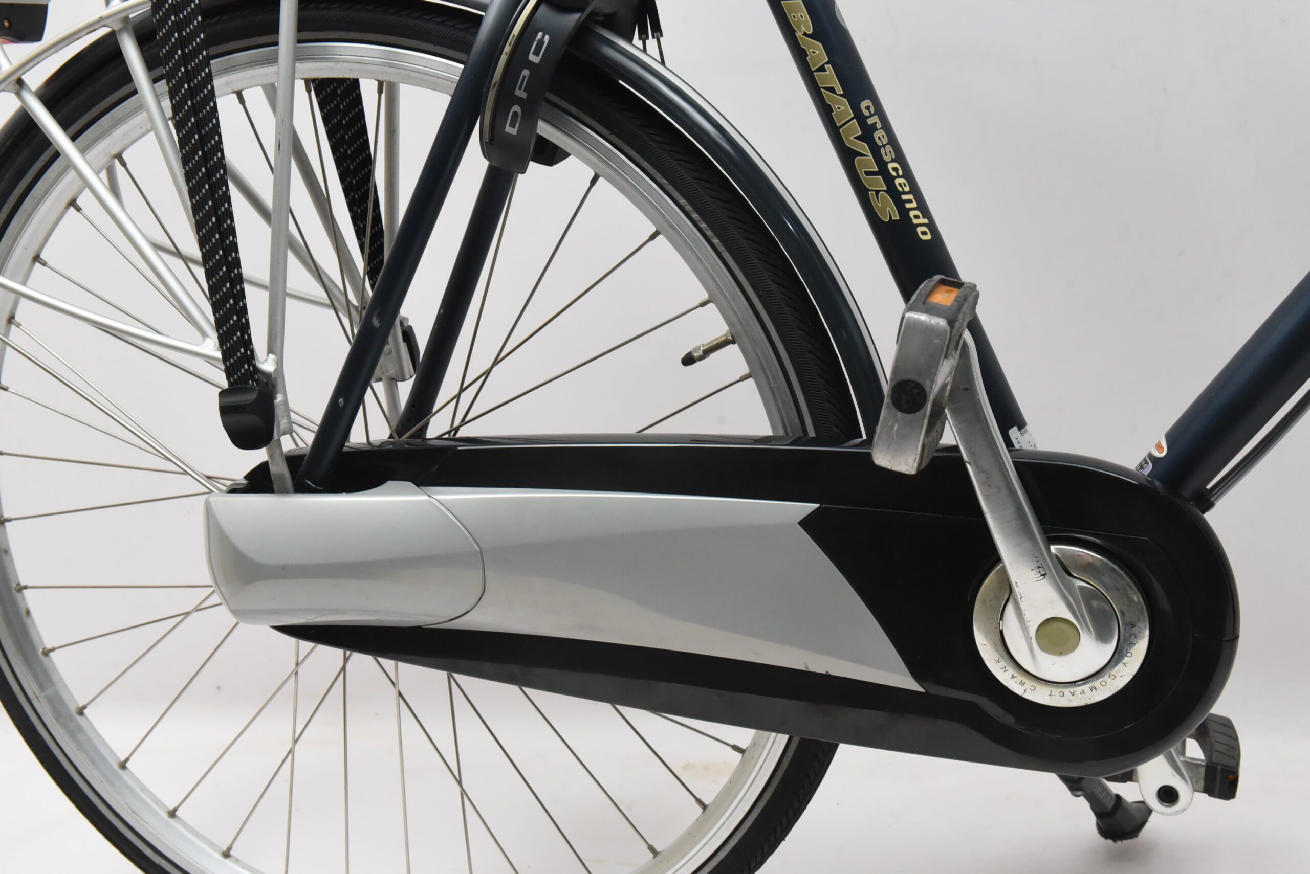28″ wielen en een dichte kettingkast met 7 versnellingen.