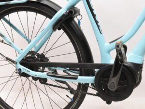 Fiets heeft een Giant middenmotor (65NM) met een uitneembare accu (500wh.) in de bagagedrager.