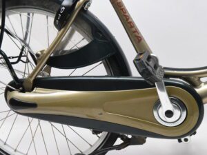 Dichte kettingkast met 7 versnellingen en rollerbrakeremmen.