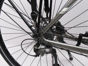 Fiets heeft 9 versnellingen met schijfremmen.